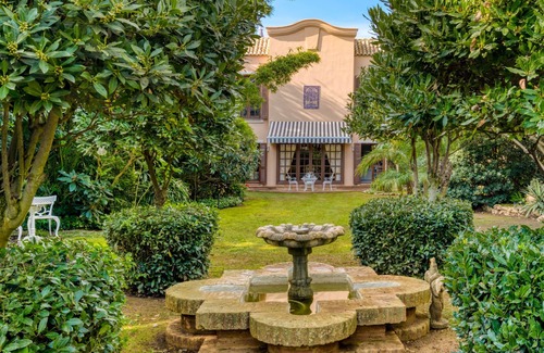 Guadalmina Baja: Luxurious house "Le Bijou", 2 storeys. 13 km from the centre of Marbella, 7 km from the centre of Puerto Banus, 3 km from the centre of San Pedro de Alcantara, in a quiet, sunny position residential area (villas), 300 m from the sea, 300 m from the beach. For shared use: property 4'000 m2 (fenced), swimming pool (12 x 6 m, depth 150 - 220 cm, seasonal availability: 01.Jan. - 31.Dec.). Private: beautiful garden to relax. Barbecue. In the house: sauna. Public parking on the road. Supermarket 1 km, shopping centre 1 km, restaurant 300 m, café 1 km, bus stop "Guadalmina Baja" 800 m, sandy beach "Playa Guadalmina" 300 m. Sports harbour 6 km, golf course (18 hole) 2 km, tennis 500 m. Please note: not suitable for children under 12 years. Object suitable for 4 adults. The owner does not accept any youth groups. The owner lives on the same property. The owner has a dog.